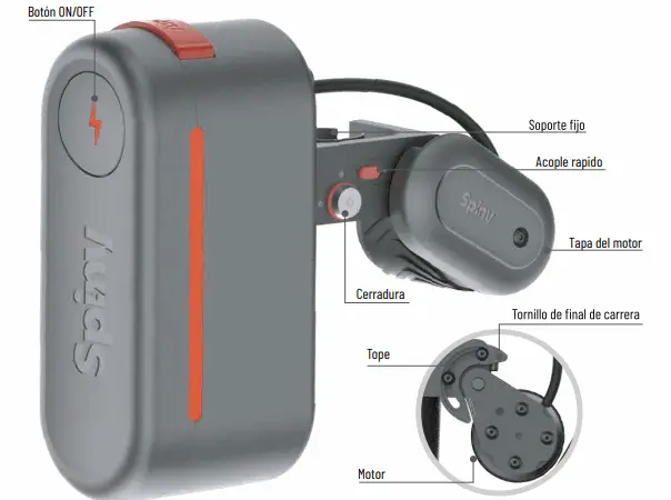 - Ajusta la altura a la que necesites poner el motor utilizando los tornillos situados en la parte trasera del SPINY.